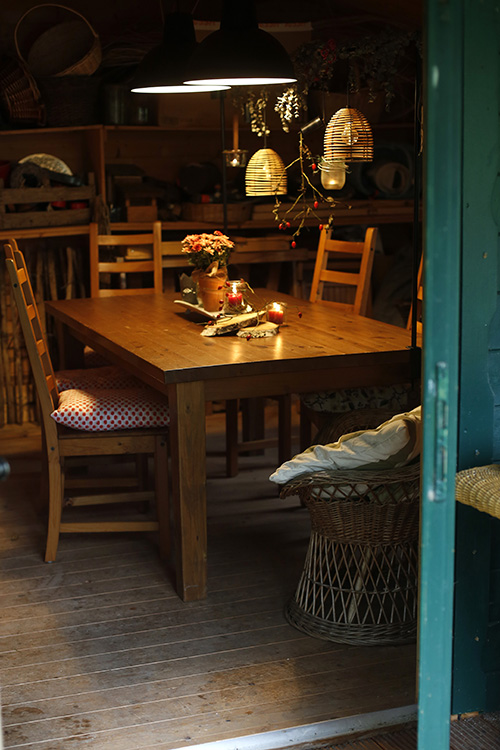 Mit ihrem „grünen Kleid“ fügt sich meine Grüne Hütte ganz harmonisch in mein Wandelgrün ein; schmiegt sich in eine Ecke des großen Gartens umgeben von Büschen und imposanten Bäumen. Ein gemütlicher und dennoch funktionaler Innenraum mit großem Tisch zum Werkeln und ein Außengelände rund um die Grüne Hütte warten auf dich.