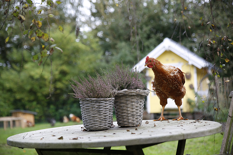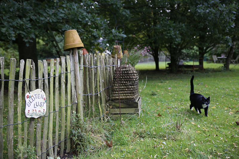 Hier geschieht Erdung auf ganz natürliche Weise, hier bietet dir die Natur alles, was du für diesen Moment der von mir angeleiteten und geführten Naturbegegnungen brauchst. Mache Streifzüge in meinem Wandelgrün, erspähe durch hohes Schilf versteckt das Biotop in der Mitte des Grundstücks, lasse deinen Blick am fließenden Wasser verweilen oder beobachte die Hühner beim Scharren.